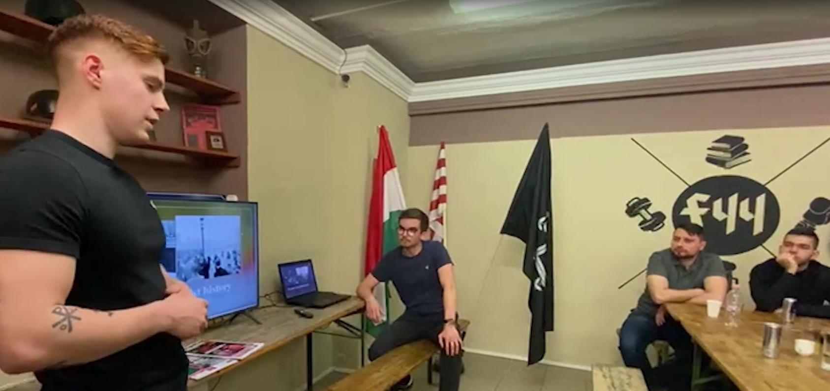 Au passage soulignons que le Red tente fréquemment de s’extirper de son marasme local en s’exportant. Encore en 2023, sans doute lors d’un seul et même périple, Aurélien Flottes et le militant en question se présentaient à Budapest devant la Légion Hongroise. On se demande ce qu’ils ont pu inventer à part un mauvais exposé sur le 6 février 34 comme le suggère le visuel sur l’ordinateur.
