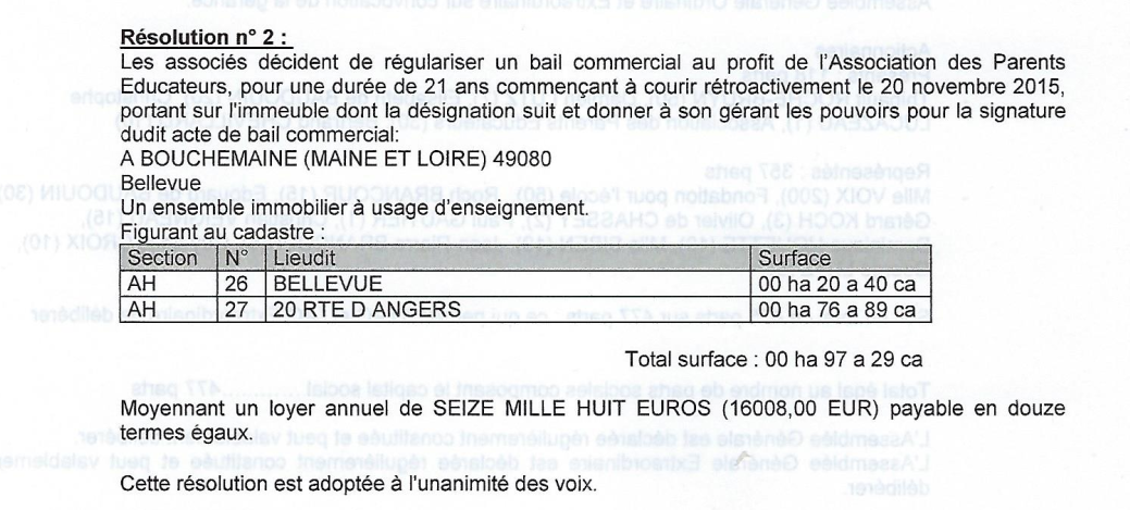 Sans plus de précision, le site de l’école nous explique que cette nouvelle équipe est bien aidée par des philanthropes qui fondent une SCI pour acquérir et mettre à disposition de l’école un ancien centre de formation. Après quelques recherches on tombe sur la SCI Saint-Joseph dont l’étude des nombreux documents disponibles est la source principale de notre enquête. On apprend ainsi qu’en 2016, l’école paye le très modique loyer de 16008€/an pour presque 10000 m2 de terrain. Il faut dire que la SCI pèse la bagatelle de 477000€. Mais qui a abondé au capital ?